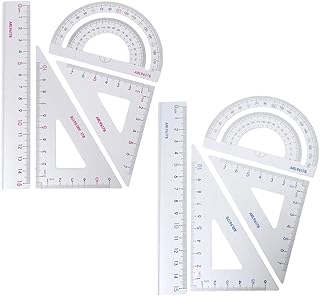 Nysunshine Ensemble de 4 fournitures scolaires de dessin, équerre, équerre, rapporteur en alliage d'aluminium