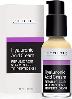 YEOUTH Crème d’Acide Hyaluronique Hydratante pour le Visage Peaux Sèches, Crème Anti Vieillissement Visage, Tonifiant Peau avec Vitamine C, Vitamine E