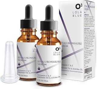 Sérum à l'acide hyaluronique hautement dosé // 2 flacons + ventouse anti-cellulite // Sérum hyaluronique anti-âge avec vitamine C & E, huile de jojoba et aloe vera // lutte contre les rides.