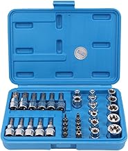 34 Pièces Coffret de Douille Torx, Douille pour Vis Torx Mâles et Femelles /Clé Douille Intérieur Extérieur 3/8' E4-E20 T10-T55, 5/16'T10-T60