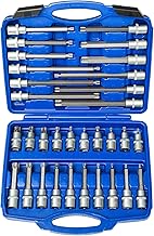 TecTake Jeu de douilles intérieur extérieur embout étoile longues torx femelle acier chrome vanadium - diverses modèles - (32 pièces | no. 402448)