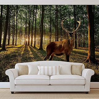 Papier peint photo - Motif cerf - Forêt nature - 416 cm x 254 cm - En non-tissé (EasyInstall) - 4 pièces