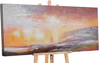 YS-Art | Tableau Peinture Acrylique Le Pouvoir de la Nature Peint à la Main 120x60cm Tableau Peinture sur Toile Unique Orange
