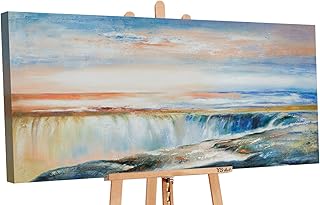 YS-Art | Tableau Peinture Acrylique Le Pouvoir de la Nature II Peint à la Main 120x60cm Tableau Peinture sur Toile Unique Bleu