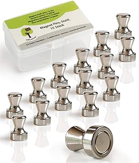 OfficeTree Aimants de Bureau néodyme - 15 épingles aimantées en néodyme argenté - Magnifique décoration à très Haut Pouvoir adhésif sur Un Tableau Blanc, réfrigérateur ou similaire