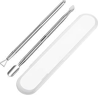 2 Pièces Poussoir à Ongles Cuticules Grattoir à Cuticules Dissolvant à Ongles en Acier Inoxydable avec Boite en Plastique pour Hommes Femmes Outils de Soin des Ongles Manucure