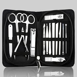 Anself 18 en 1 Set de Coupe-ongles En Acier inoxydable Soin des Ongles Outil de Manucure Pédicure, avec étui de Voyage Portable