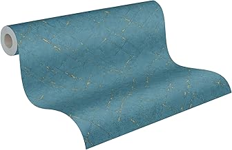 Papier Peint Uni New Life A.S. Création Papier peint intissé 10.05 m x 0.53 m Bleu Pétrole Fabriqué en Allemagne 376802 37680-2