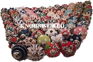 Assortiment de 20 boutons de portes en céramique style vintage fleuri pour placard, tiroir, armoire