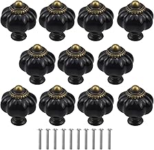 10 Pièces Poignée de Porte en Forme de Citrouille, Boutons Ceramique Tiroirs, Boutons Vintage de Citrouille, Rond Bouton de Meubles avec Vis pour Meubles, Portes, Armoires, Tiroirs (Noir)
