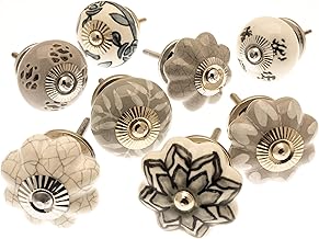 Lot de 8 boutons de placard contemporains mélangés en céramique grise dans un style rétro vieilli (MG-714) – Marque Mango Tree TM Produit enregistré