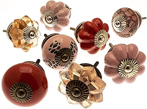 Mango Tree - Lot de 8 boutons de placard en céramique et verre rouge et rose de style vintage (MG-750)