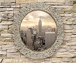 decomonkey | Papier peint intissé New York 350x256 cm Trompe l oeil | Déco Mural Tableaux Muraux Photo Brique Mur de Pierre Fenetre NY City brun