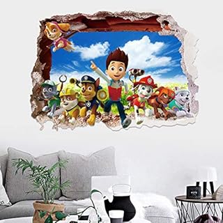 Kibi Paw Patrol Sticker Mural 3D Chambre Garçon Fille Paw Patrouille 3D Autocollants Muraux Brisés Stickers Muraux Pat Patrouille Autocollants Muraux Pat Patrouille Chambre Enfant