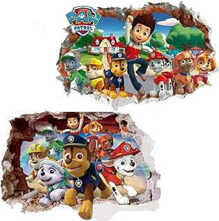 Kibi 2PCS Paw Patrol Sticker Mural 3D Chambre Garçon Fille Paw Patrouille 3D Autocollants Muraux Brisés Stickers Muraux Pat Patrouille Autocollants Muraux Pat Patrouille Chambre Enfant