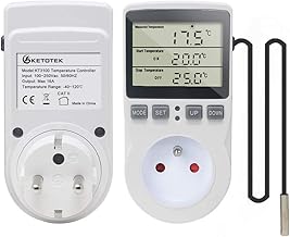 KETOTEK Prise Thermostat Regulateur de Température Numérique Chauffage Refroidissement avec Sonde, LCD Prise Contrôleur de Température Minuteur pour Aquarium Incubateur Serre