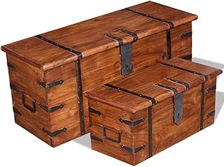 Tidyard Coffres de Rangement 2 pcs/Coffre de Rangement Bois Vintage en Bois Massif