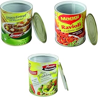 Kogu Lot de 3 coffres de conservation avec coffres en boîte – Cachette de l'argent en forme de boîte de conserve, Ravioli