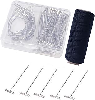 T Pins et C Aiguilles Courbées, Perruque de Fabrication de Perruques Set, 70 Pièces avec 328 Verges Fil pour la Fabrication de Perruques, Blocage du Tricot, Modélisation et Artisanat