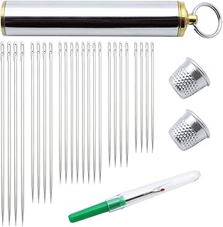 AOBETAK Aiguilles Auto-Filetage, 24 Pièces Aiguilles à Coudre à la Main en Acier Inoxydable pour Accessoires de Travaux d’Aiguilles à Faire à la Main